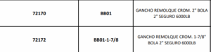 GANCHO REMOLQUE CROM. 2″ BOLA 2″ SEGURO 6000LB
